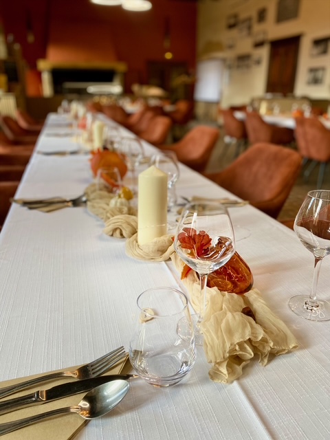 Une salle spacieuse et lumineuse, parfaite pour des repas festifs et dansants.